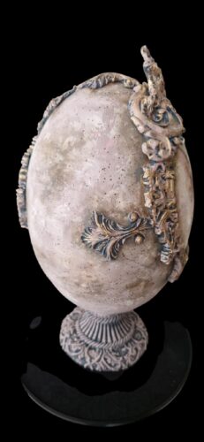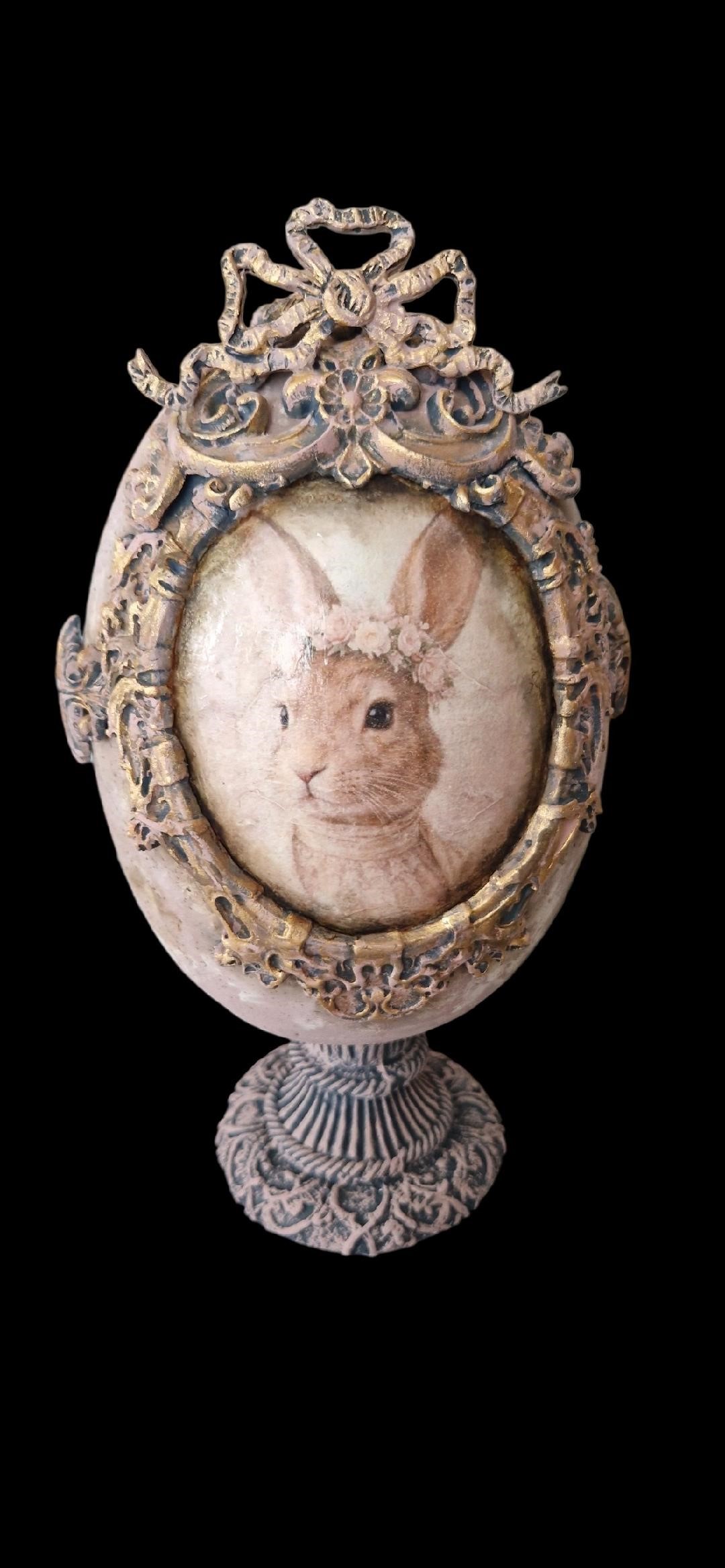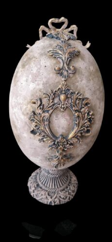 Va invit sa decoram un ou din ceramica cu baza, de cca 25 cm inaltime, in stil vintage, victorian.